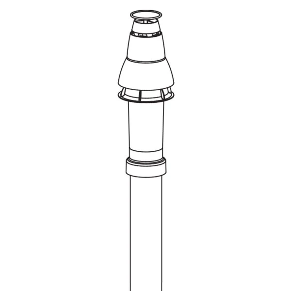 This vertical flue kit with vertical connector is required when installing a flue run through a flat or pitched roof.